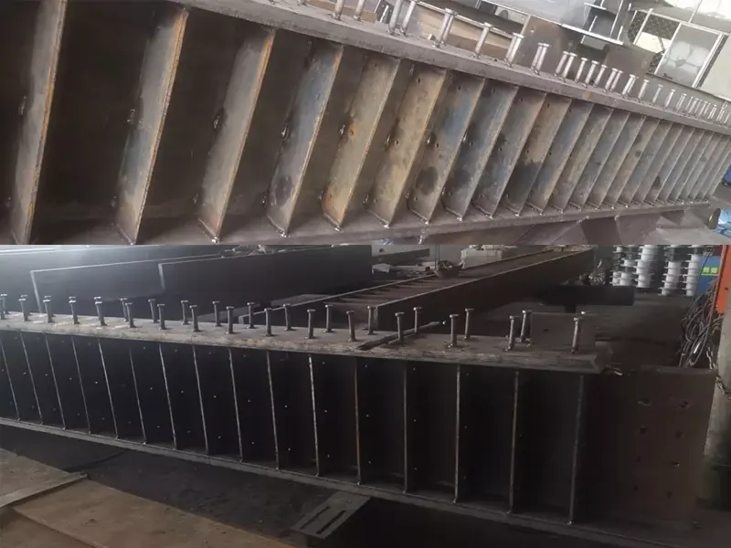 ● Oceľový lúč: Pripojte oceľové stĺpy, aby ste vytvorili štruktúru rámu, aby sa nosila podlaha a strecha.
