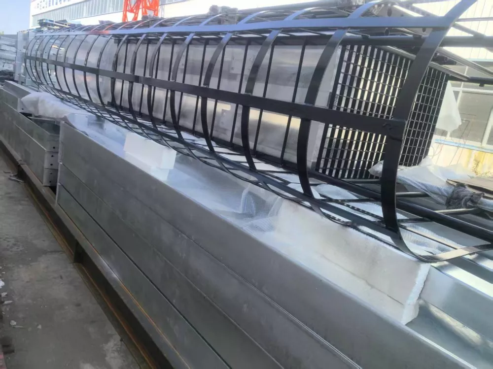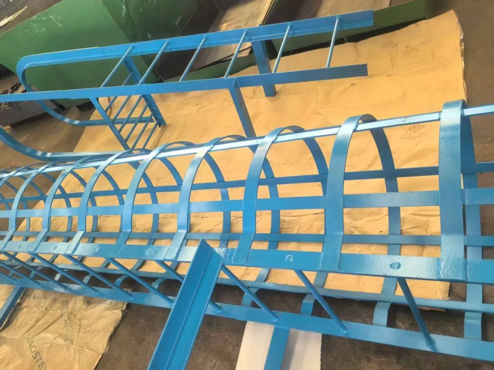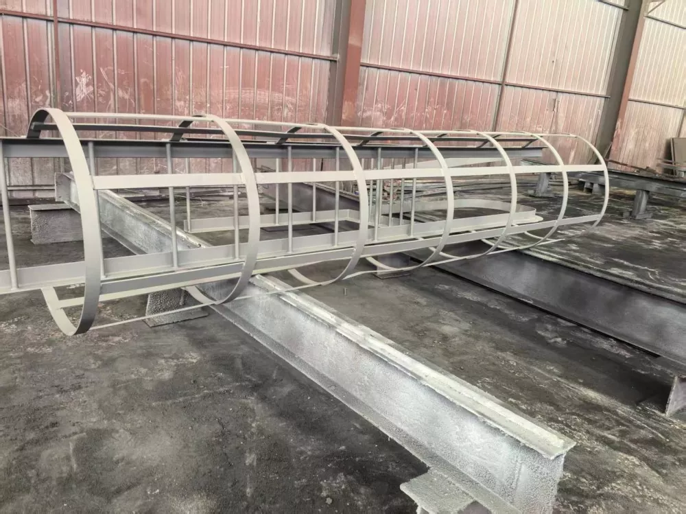 Inštalácia zábradlia: Pri schodoch s výškou presahujúcou 3 metre musia byť zábradlia inštalované 2,5 metra nad zemou. Priemer zábradlia by mal byť medzi 700 mm a 800 mm. Horizontálne krúžky by mali byť vyrobené z 16 mm kruhovej ocele so vzdialenosťou medzi krúžkami 300 mm až 450 mm. Vertikálne výstužné tyče musia byť vyrobené z 12 mm kruhovej ocele, pričom najmenej štyri tyče musia byť rovnomerne rozmiestnené. Bezpečnostná klietka musí byť inštalovaná nepretržite na vrchol rebríka alebo odpočívacej plošiny. Konektory a upevňovacie prvky