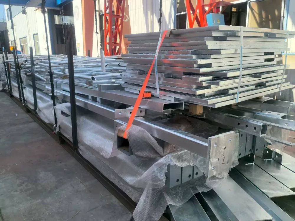 4. Sme veľmi praktickí. Stupne schodov s oceľovou konštrukciou môžu byť vyrobené z materiálov, ako sú vzorované oceľové dosky a oceľové mriežky, a môžu byť prispôsobené tak, aby vyhovovali rôznym dopravným vzorom, čo uľahčuje chodenie po schodoch.